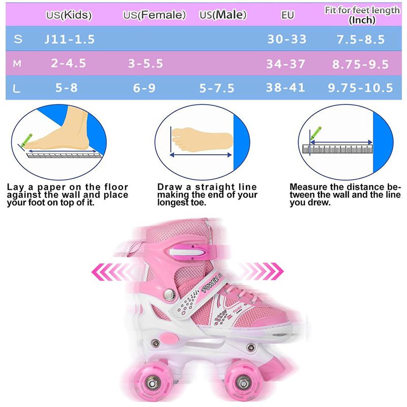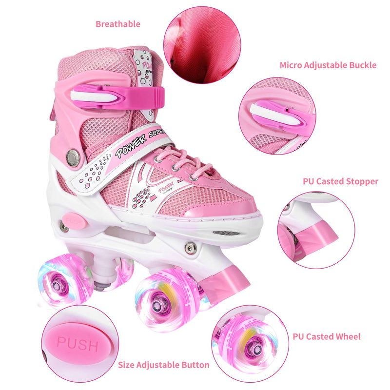 Roller Skates for Girls and Kids, 4 Sizes Adjustable Roller Skates, with All Wheels Light up, Fun