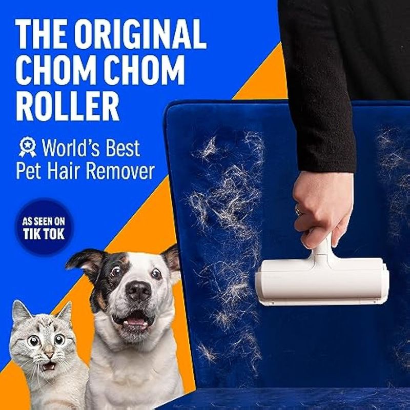 The ChomChom Roller es el mejor removedor de pelo de mascotas del mundo. Simplemente moviendo el rodillo de pelo de mascotas hacia adelante y hacia atrás, inmediatamente rastreas y recoges pelos de gato y pelos de perro incrustados profundamente en sofás, sofás, camas, alfombras, mantas, edredones y mucho más. Probablemente haya probado todo tipo de productos para eliminar pelusas y pelusas de mascotas... desde cintas adhesivas hasta productos que no se pueden usar una y otra vez. Con el mejor removedor de pelo de mascotas del mundo, nunca necesitarás otro dispositivo. Sin adhesivo o cinta adhesiva, 100 reutilizable, no requiere fuente de alimentación, removedor de pelo de mascotas limpio y conveniente. ¡Son grandes regalos!