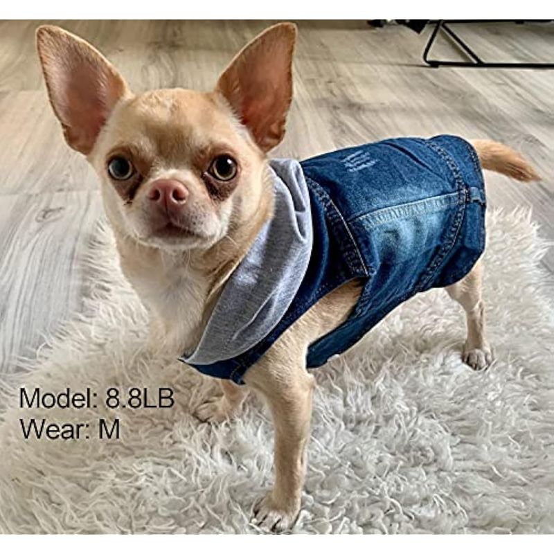 Ropa para mascotas, chaqueta de mezclilla con capucha azul fresco, disfraz de camisa para cachorros,