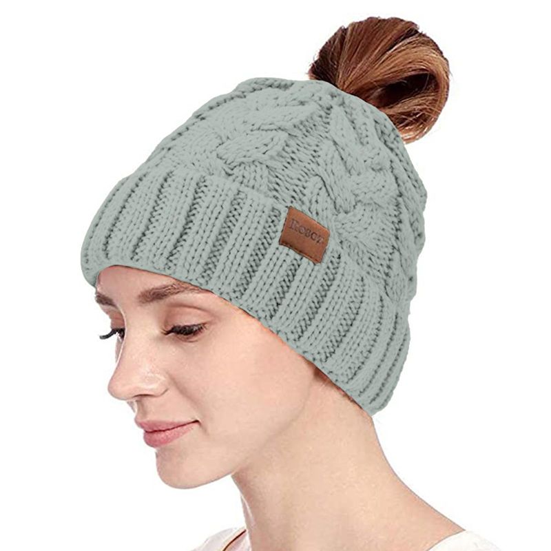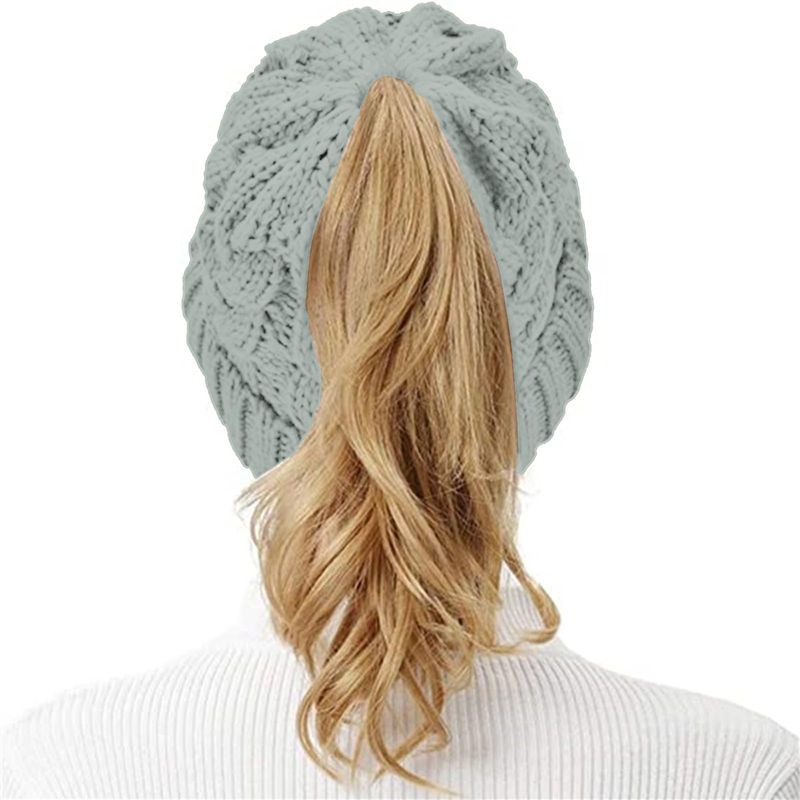 Rosoz Gorro de cola de caballo para mujer, gorro cálido de invierno, suave, elástico, de punto