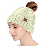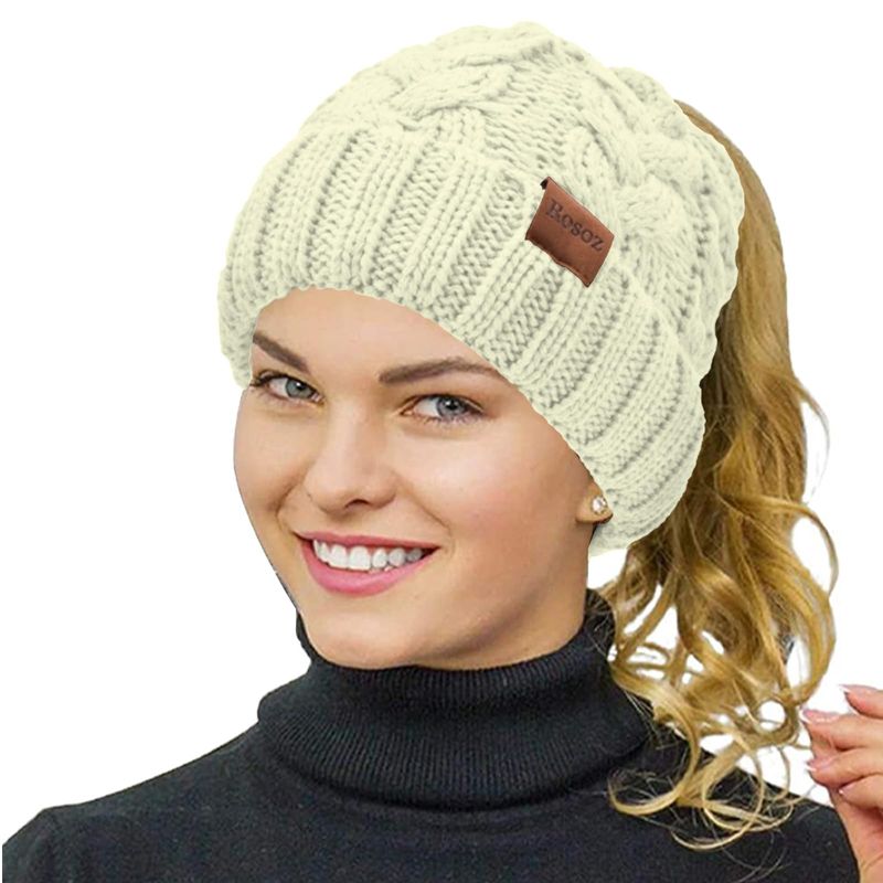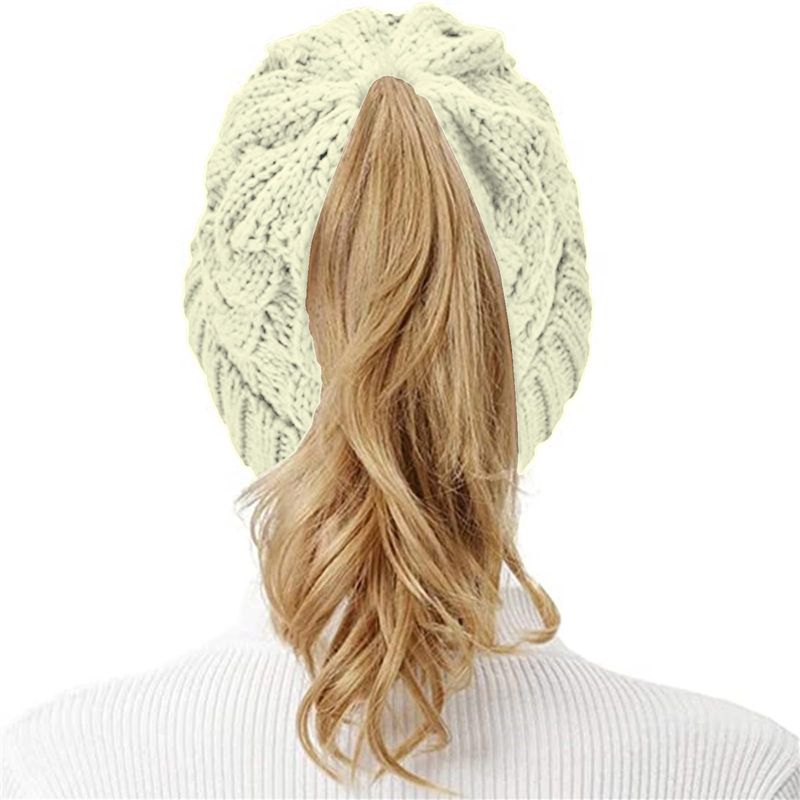 Rosoz Gorro de cola de caballo para mujer, gorro cálido de invierno, suave, elástico, de punto