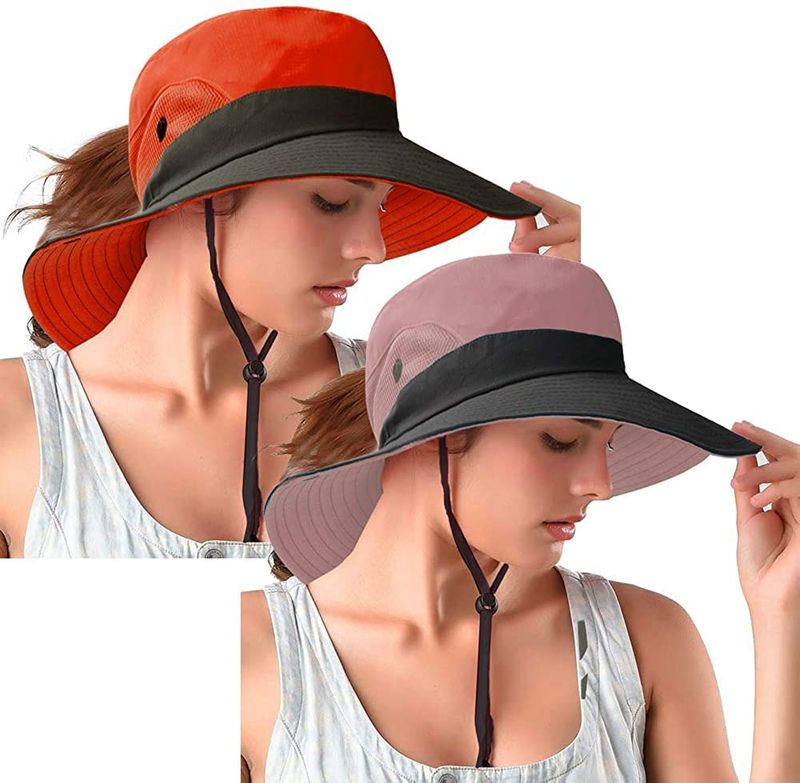 Rosoz Sombreros de cola de caballo para mujer, protección UV, malla plegable, ala ancha, senderismo,