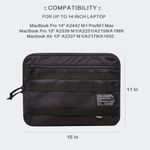 8 compartimentos funcionales más 2 fundas acolchadas para portátil: el interior de esta funda para laptop de 14 pulgadas está diseñado con compartimentos funcionales para almacenamiento de mouse, adaptador de laptop y cables. Además de bolsillo interior con cremallera para dispositivos adicionales y accesorios electrónicos. Bolsillo frontal con cremallera para un acceso rápido con 3 bolsillos de malla para una buena organización. Las 2 fundas acolchadas de espuma para laptop evitan arañazos, golpes y otros daños potenciales durante el tránsito con laptop, tableta o documentos importantes