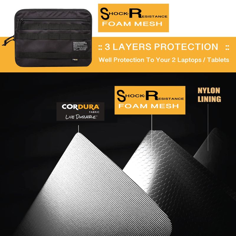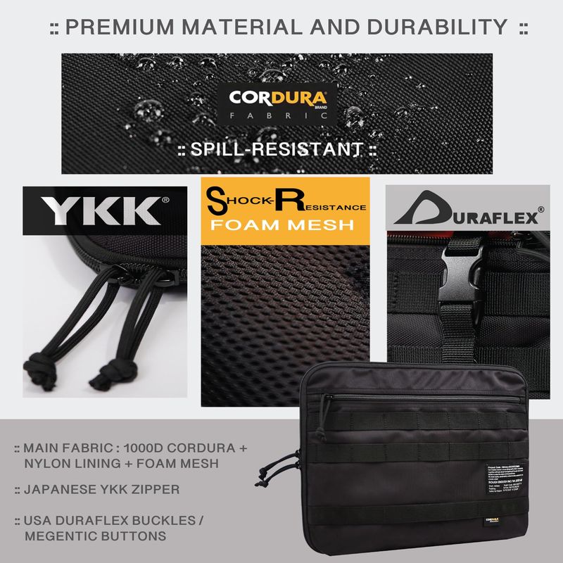 Resistente a la intemperie y diseño táctico resistente: funda para portátil de 14 pulgadas que se puede utilizar para almacenar tanto portátiles de 14 pulgadas como cualquier tableta en una funda para laptop al mismo tiempo. Hecho de poliéster Cordura 1000D impermeable de alta calidad, cremallera YKK japonesa, hebillas Duraflex de EE. UU. La funda para laptop de 14 pulgadas Rough Enough proporciona una durabilidad superior y una excelente resistencia a la intemperie, asegurando que tu laptop y tableta se mantengan seguros y protegidos en diversas condiciones climáticas