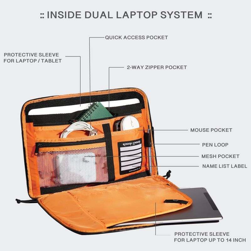 ROUGH ENOUGH - FUNDA PARA PORTáTIL DE 14 PULGADAS CON COMPARTIMENTO DE BOLSILLO PARA ACCESORIOS, FUNCIóN MOLLE TáCTICA PARA TABLETA DUAL, COLOR NEGRO