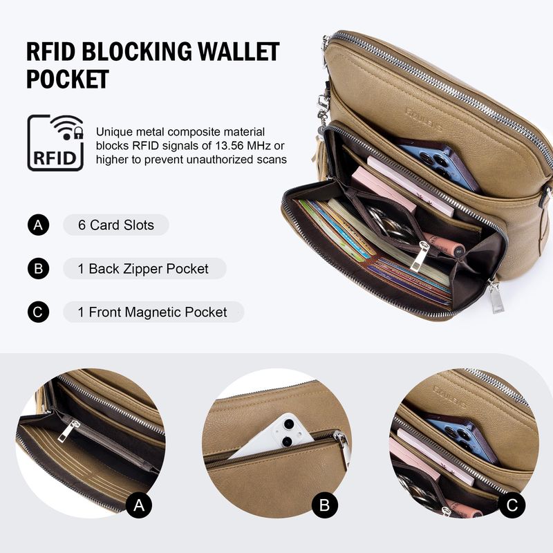 Roulens Bolso cruzado para mujer, ligero, mediano, de cuero suave, con borla, para mujer