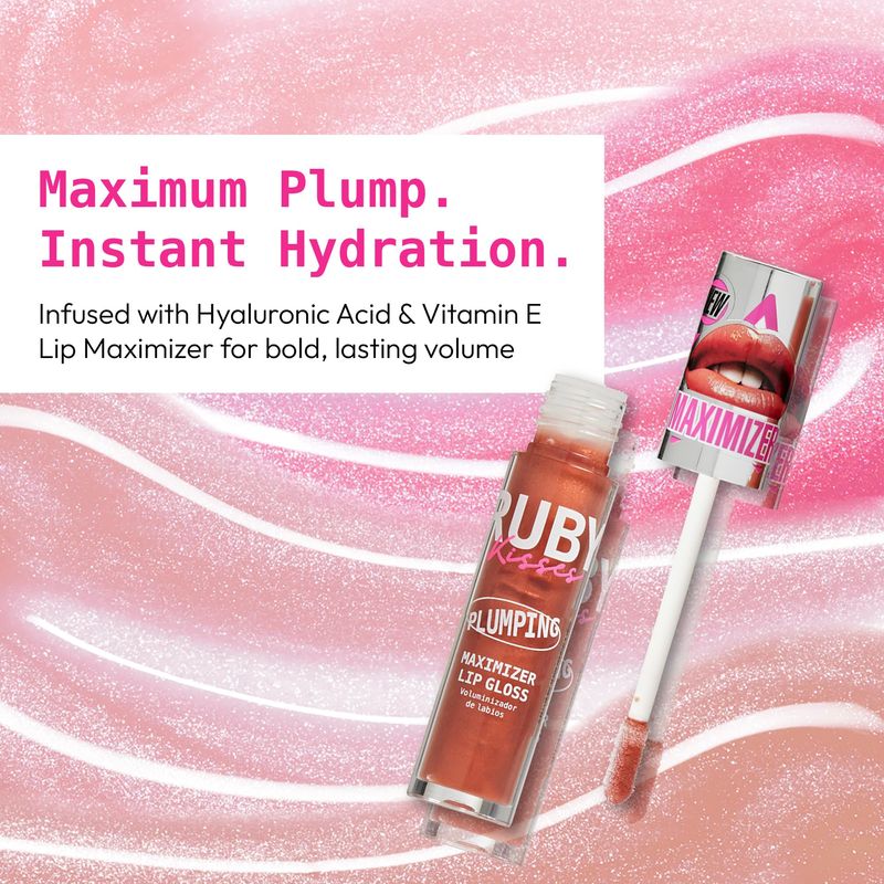Ruby Kisses Brillo de labios voluminizante, hidratante y voluminizador de alto brillo con ácido
