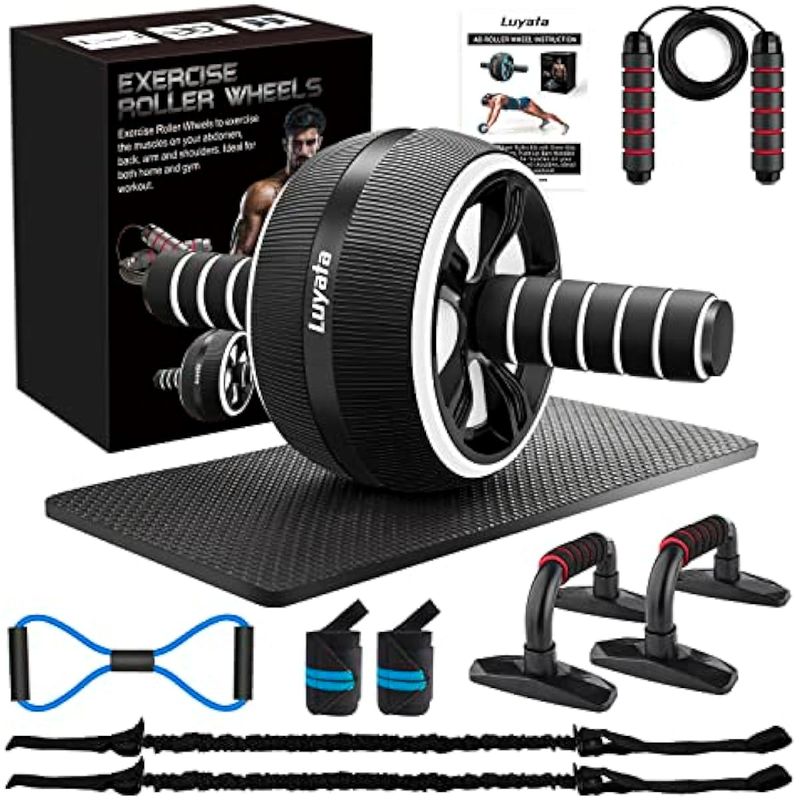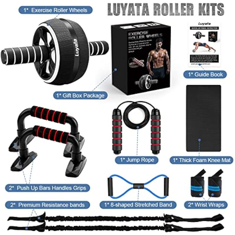 Rueda de rodillo Ab, 10 en 1 para abdominales con bandas de resistencia, estera de rodilla, cuerda