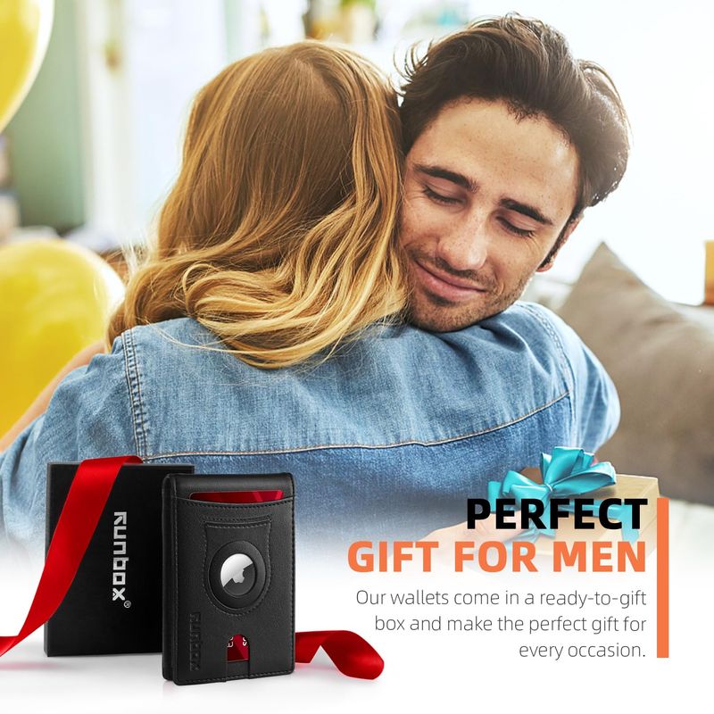 RUNBOX Billetera para Airtag para hombre, con soporte para Airtag, cartera de cuero para tarjetas de