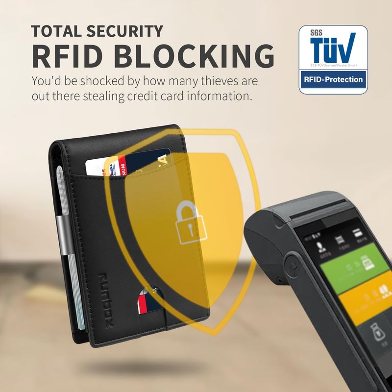 RUNBOX Billeteras delgadas con clip para dinero para hombre, bloqueo RFID, 11 tarjetero,