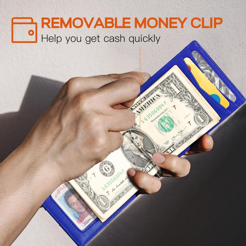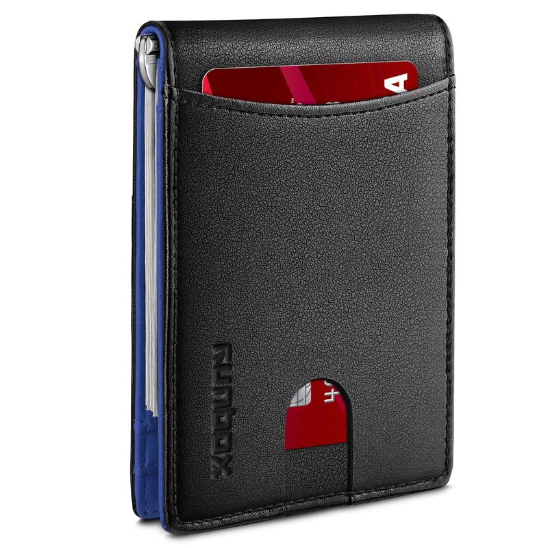 RUNBOX Cartera delgada de cuero genuino para hombre, bloqueo RFID, plegable, minimalista, bolsillo