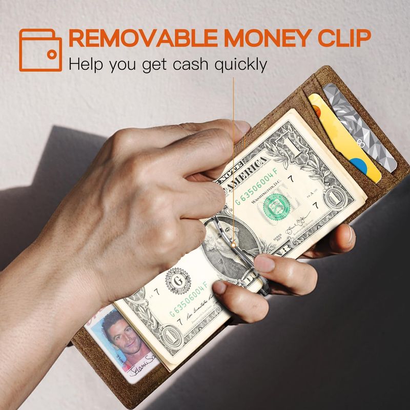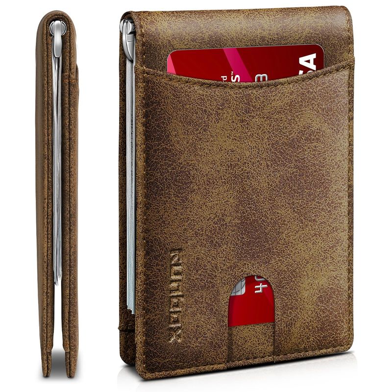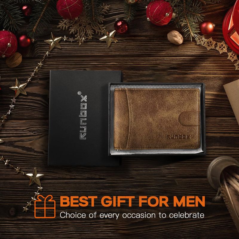 RUNBOX Cartera delgada de cuero genuino para hombre, bloqueo RFID, plegable, minimalista, bolsillo