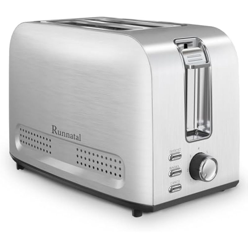 RUNNATAL TOSTADORA DE RANURA DE 2 REBANADAS, ACERO INOXIDABLE, TOSTADORA DE RANURA EXTRA ANCHA CON 7 AJUSTES DE SOMBRA, PLATEADO METáLICO