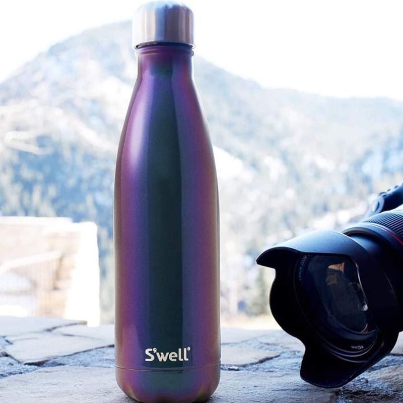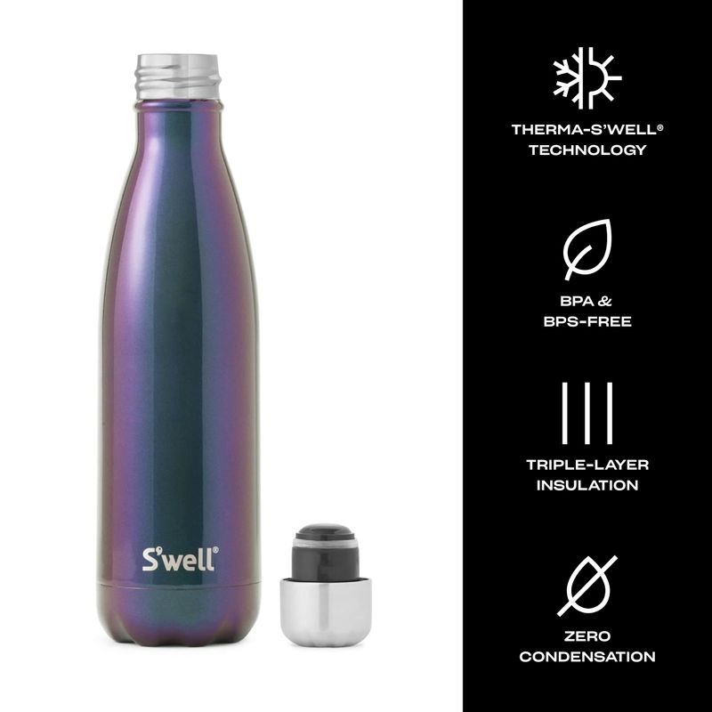 S'well - Botella de agua de acero inoxidable, 17 onzas líquidas, suave al tacto, color negro, triple