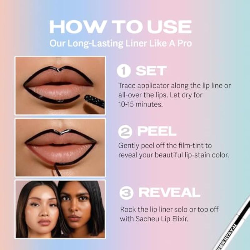SACHEU LIP LINER STAY-N - DELINEADOR DE LABIOS DE TATUAJE DESPRENDIBLE, TINTE DE LABIOS DE LARGA DURACIóN, INFUNDIDO CON áCIDO HIALURóNICO Y VITAMINA E, P-INKED