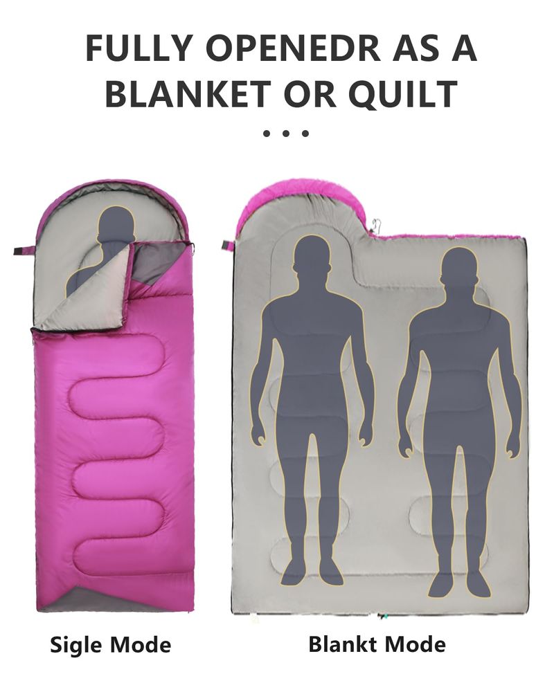 Si sufres el calor mientras duermes, puedes abrir el cierre lateral del saco. Se puede utilizar como una manta para dar calor.