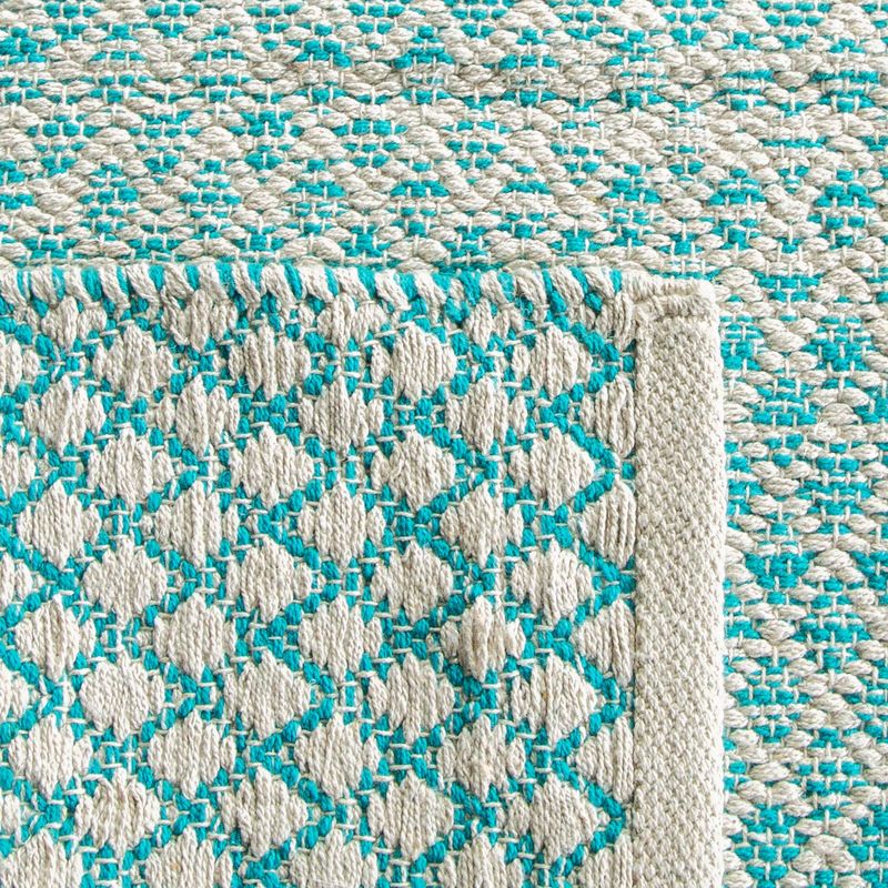 SAFAVIEH MONTAUK COLLECTION MTK601A - TAPETE DE ALGODóN HECHO A MANO, COLOR NEGRO Y MARFIL., ALGODóN, TURQUESA/ MARFIL