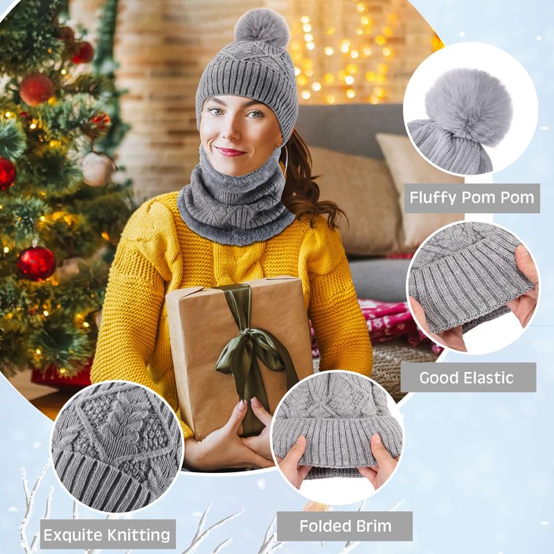 Hecho de fibras acrílicas de punto gruesas y cómodas, el sombrero y la bufanda de punto son suaves y cálidos con un forro polar suave, tejido grueso y apretado con elasticidad que puede cubrir tu cabeza y cuello firmemente, funciona bien contra el viento y el polvo en días fríos.