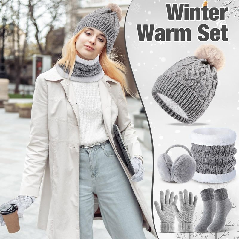 SATINIOR JUEGO DE 5 PIEZAS DE GORRO DE INVIERNO BUFANDA Y GUANTES DE PUNTO GORRO CON POMPóN, GUANTES CáLIDOS PARA PANTALLA TáCTIL, CALENTADOR DE OREJERAS PARA MUJER