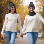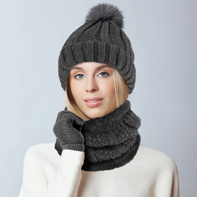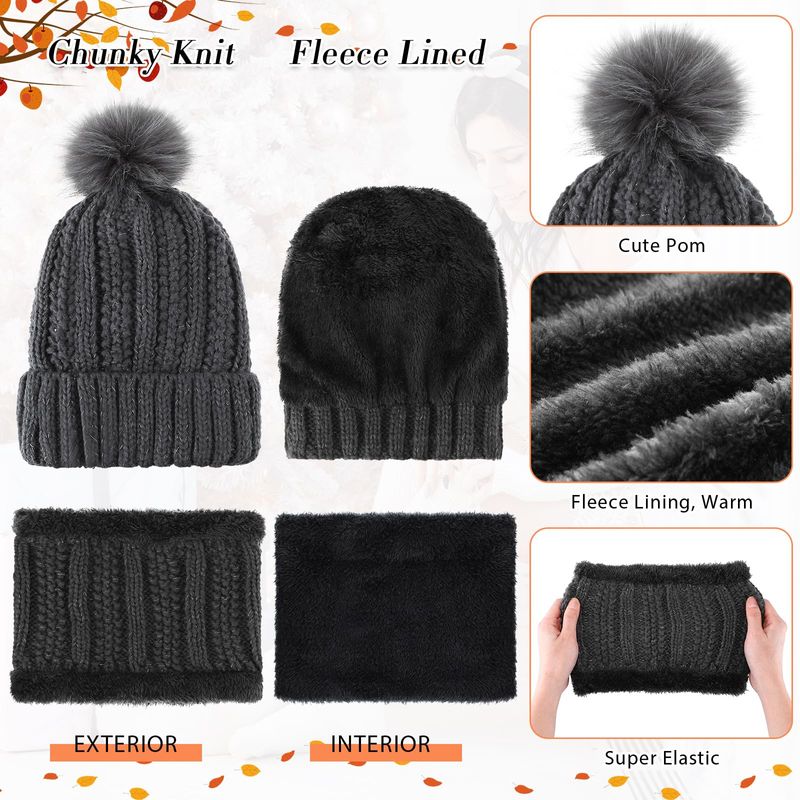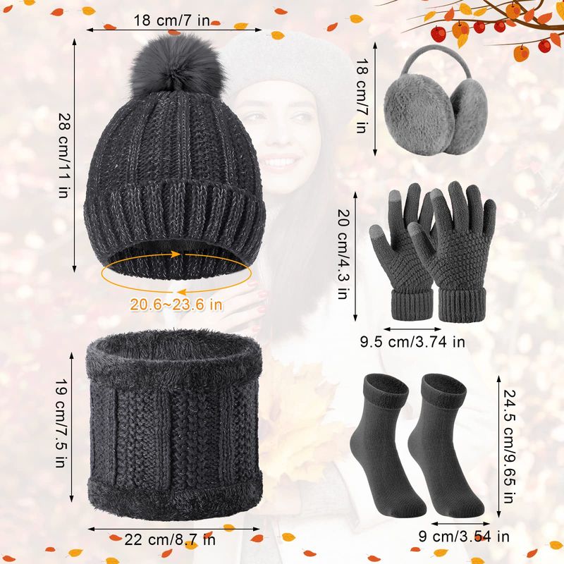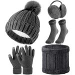 HOGARINDUMENTARIA Y ACCESORIOSSATINIOR Juego de 5 piezas de gorro de invierno bufanda y guantes de punto gorro con pompón, guantes