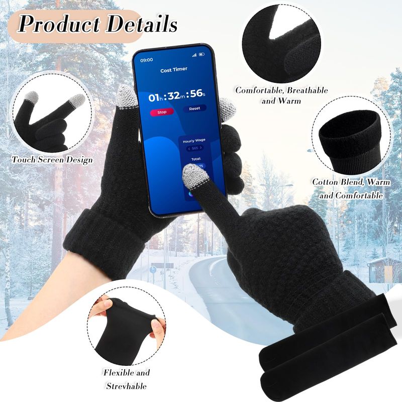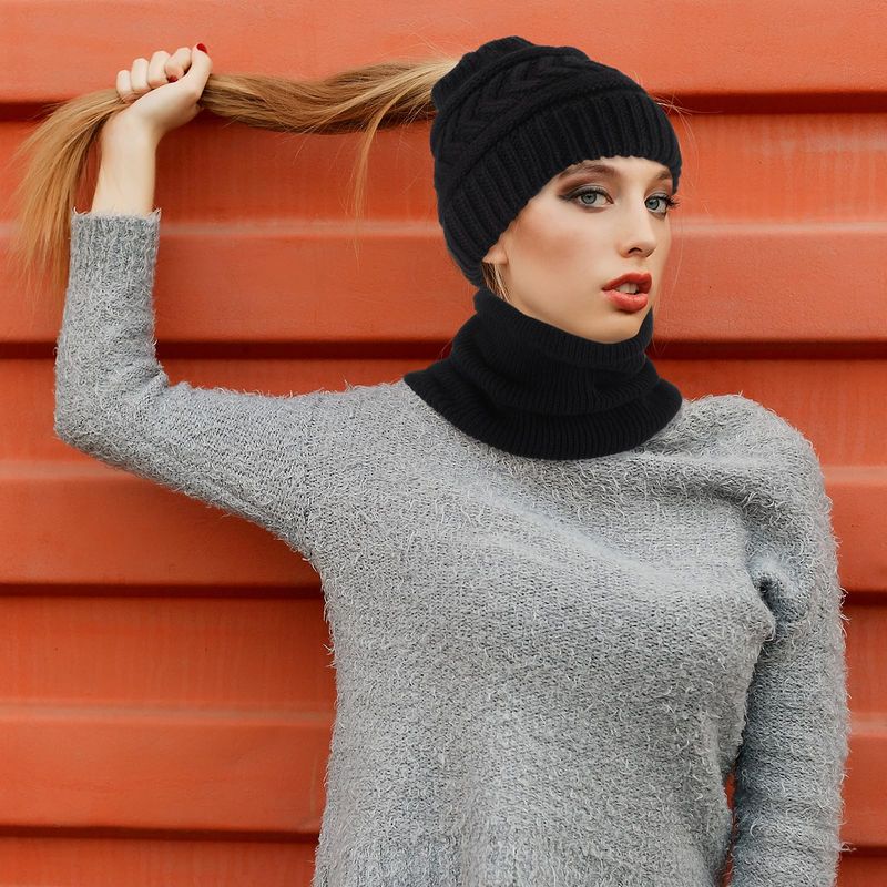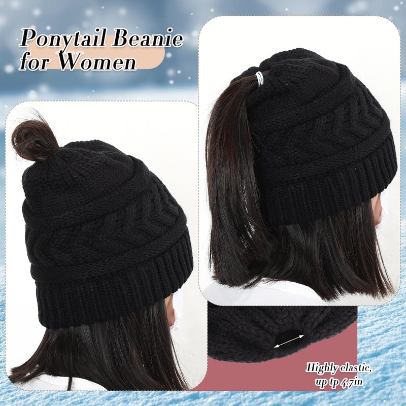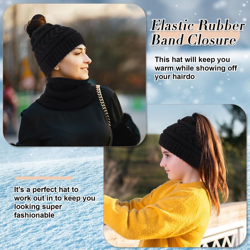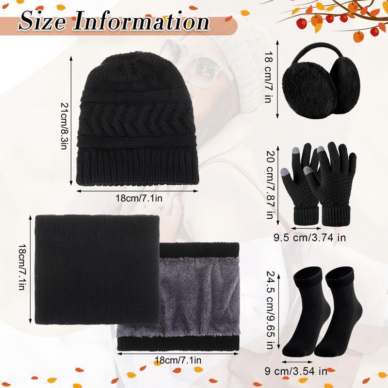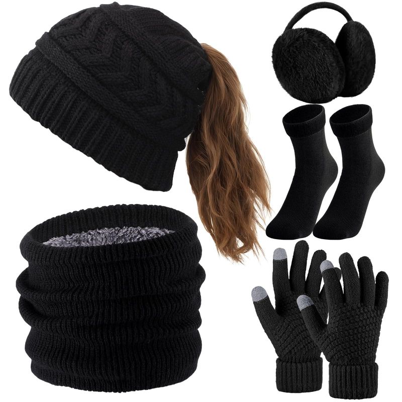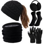 HOGARINDUMENTARIA Y ACCESORIOSSATINIOR Juego de 5 piezas de gorro de invierno bufanda y guantes de punto gorro con pompón, guantes