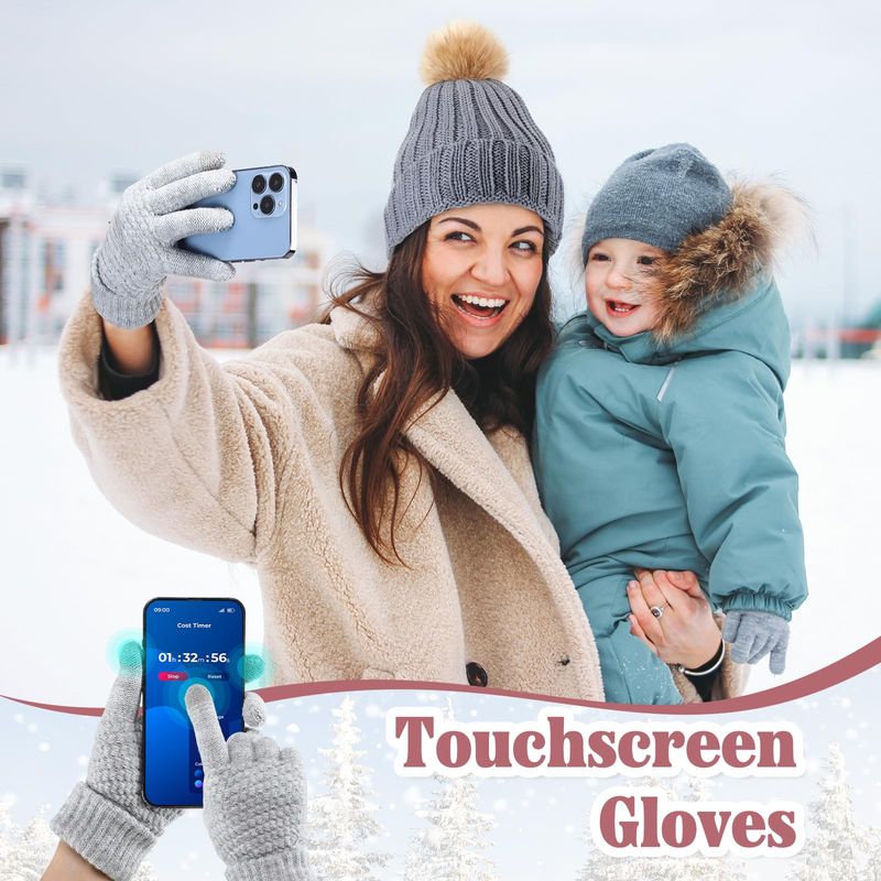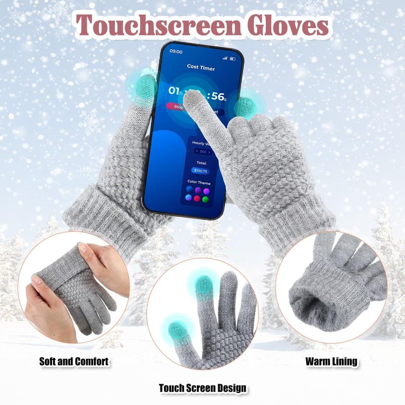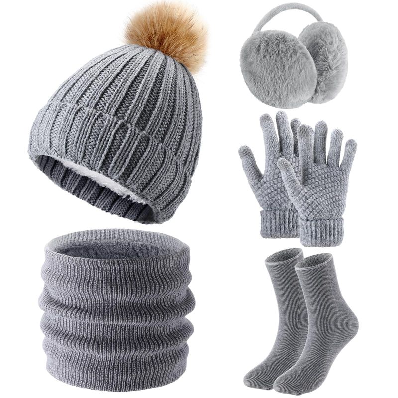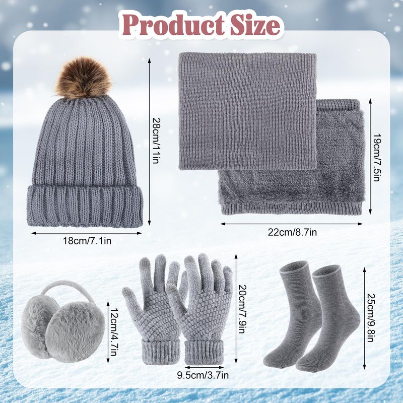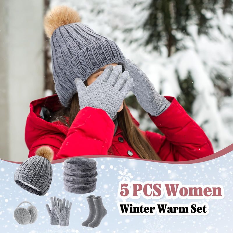 HOGARINDUMENTARIA Y ACCESORIOSSATINIOR Juego de 5 piezas de gorro de invierno bufanda y guantes de punto gorro con pompón, guantes