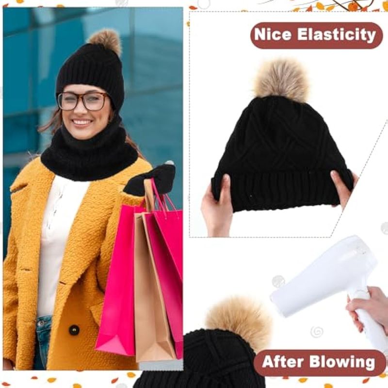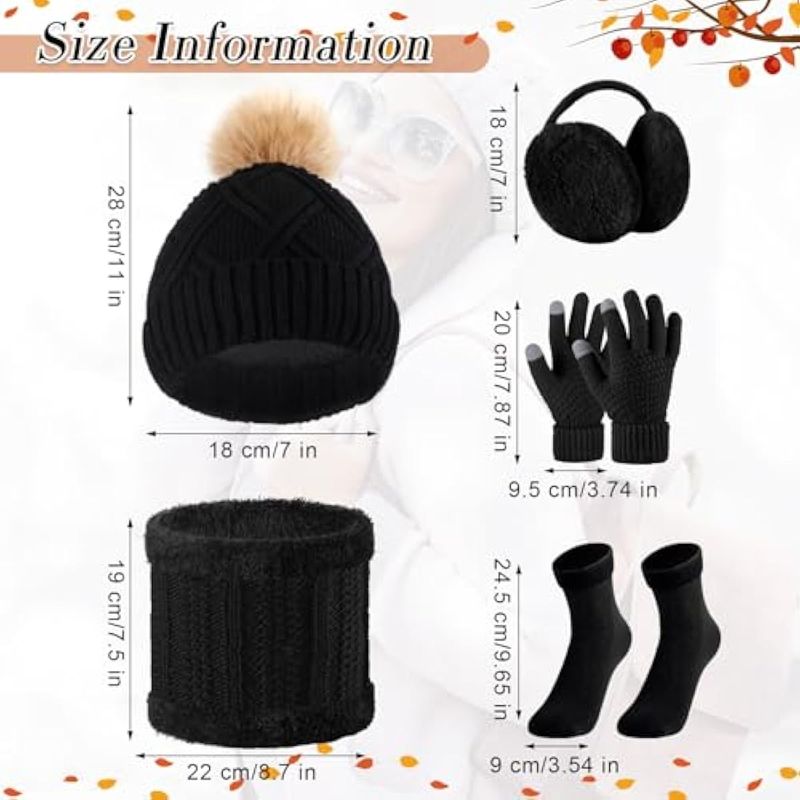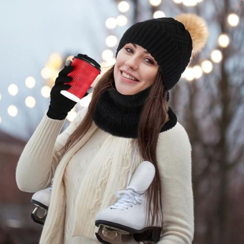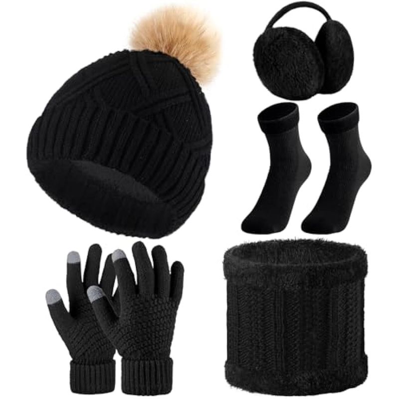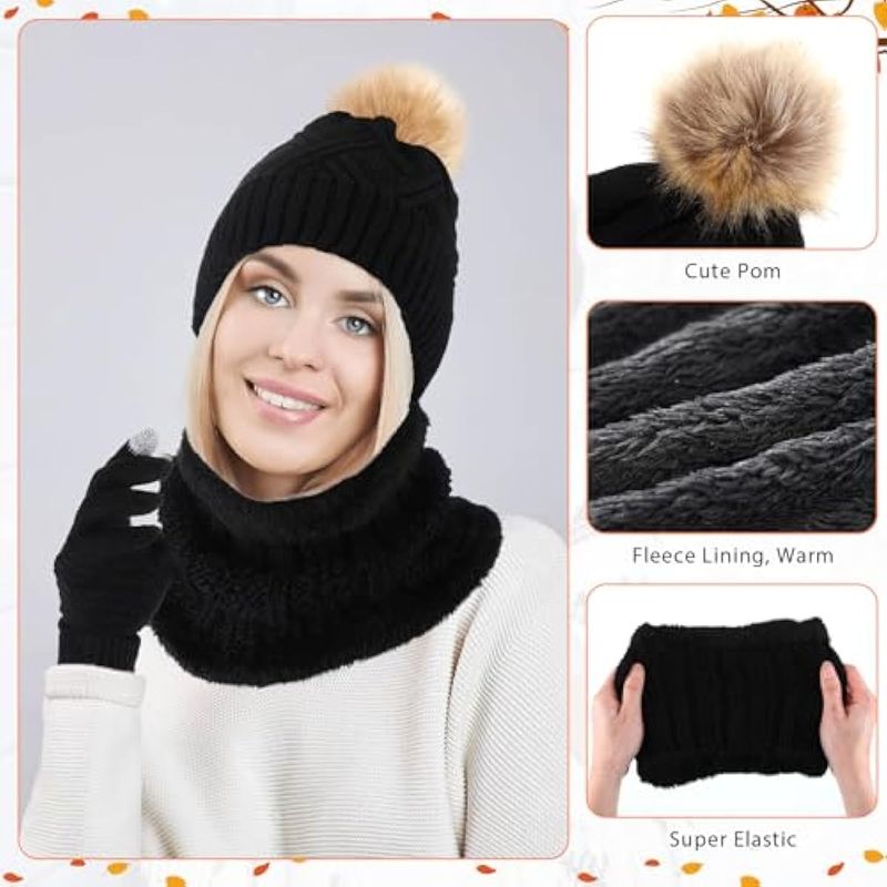 HOGARINDUMENTARIA Y ACCESORIOSSATINIOR Juego de 5 piezas de gorro de invierno bufanda y guantes de punto gorro con pompón, guantes