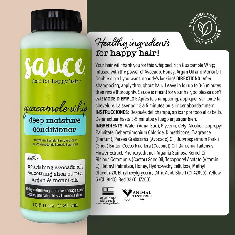 SAUCE BEAUTY Guacamole - Acondicionador de humedad profunda (10.5 fl oz) con manteca de karité y