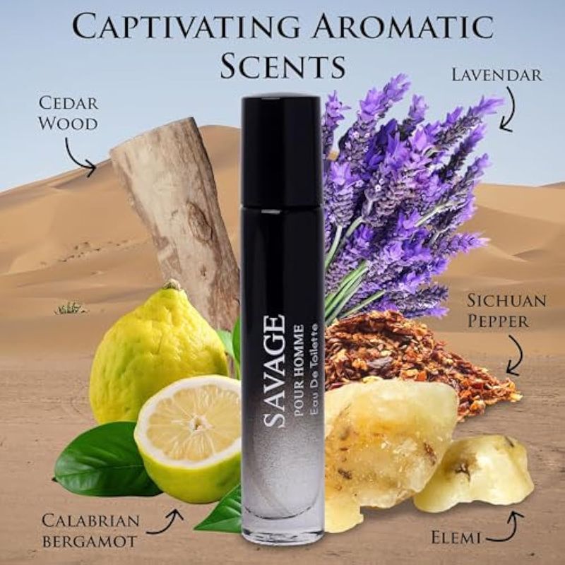Aroma cautivador: Savage for Men de NovoGlow combina una apertura fresca y picante con un corazón complejo y una base amaderada y sensual con acentos ahumados para crear un aroma cautivador y moderno que combina frescura con un toque de calidez y sofisticación.