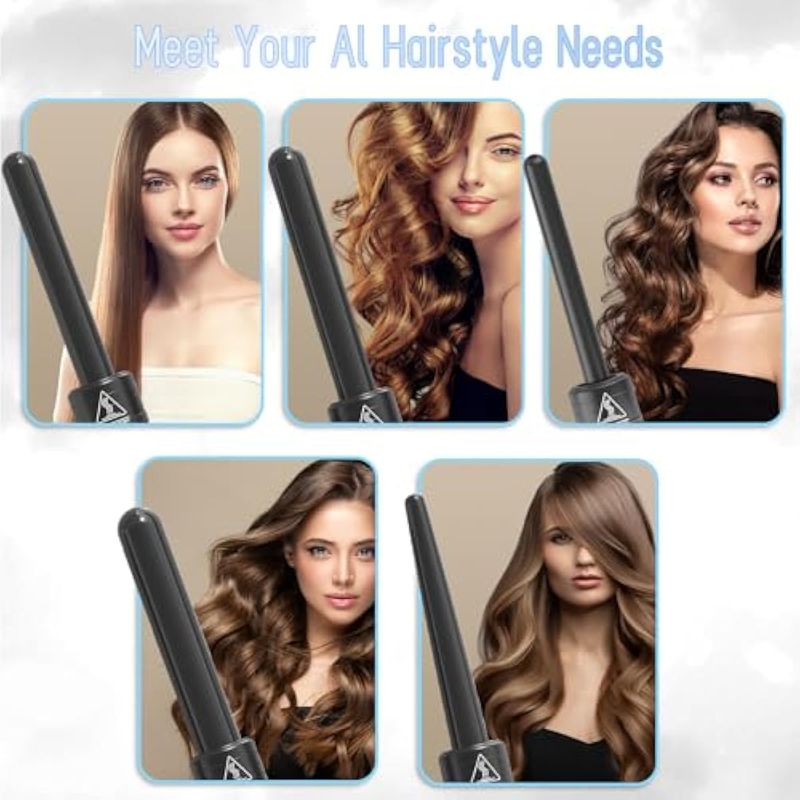 1. Juego de rizadores 5 en 1: el rizador cuenta con 5 barriles de cerámica turmalina diferentes 0.35-0.7 pulgadas, 0.75 pulgadas, 0.75 pulgadas, 0.75-1 pulgada, 1 pulgada, 1.25 pulgadas, lo que te permite crear fácilmente varios peinados para ti.