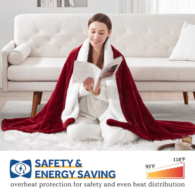 ???? ?Seguridad?--- Manta sherpa de felpa térmica con certificación ETL y FCC con menor radiación electromagnética, características con diseño de protección contra sobrecalentamiento que pueden proteger la manta eléctrica del sobrecalentamiento para evitar accidentes y garantizar la seguridad.