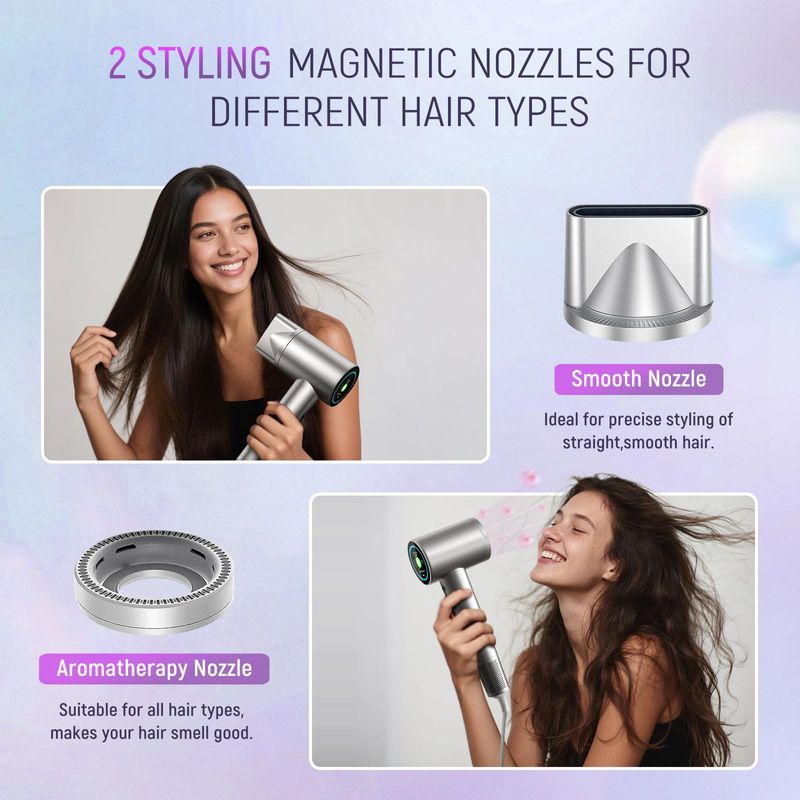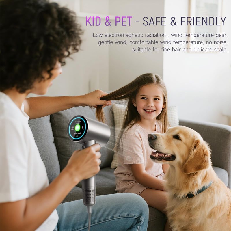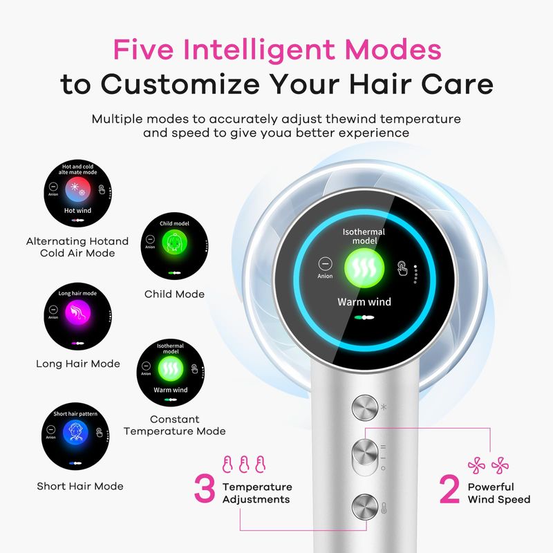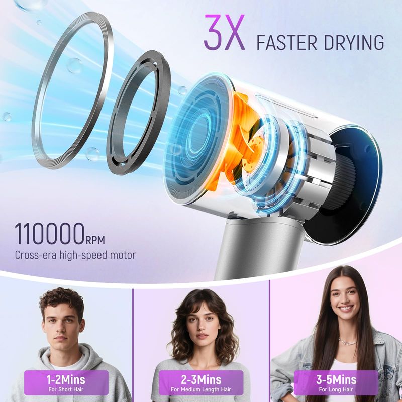 Secador de pelo iónico de alta velocidad: secado rápido de 3 minutos con motor sin escobillas.