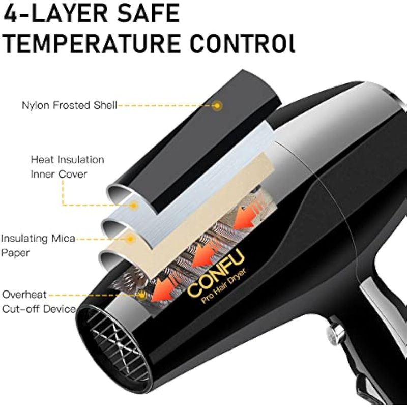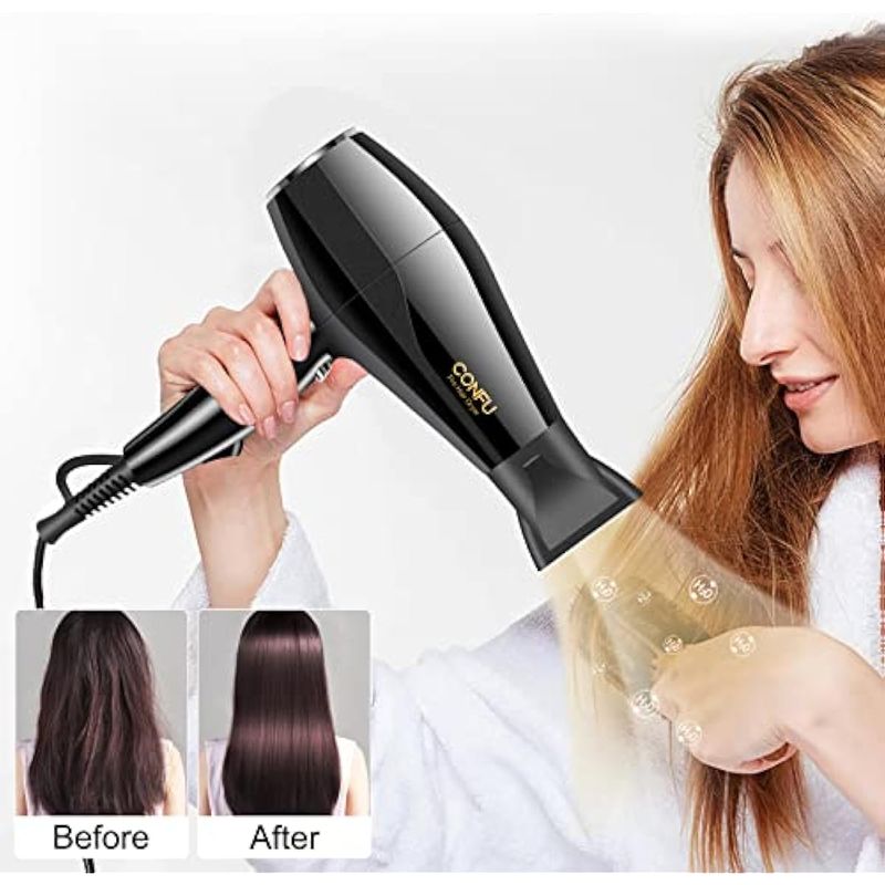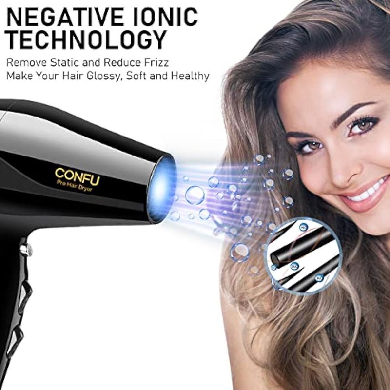 Protege profundamente el cabello de daños o apagados: el secador de pelo CONFU cuenta con tecnología de cerámica turmalina y tecnología iónica negativa que ayuda a prevenir daños por calor con menos encrespamiento, crea un acondicionamiento iónico para un cabello suave y brillante.