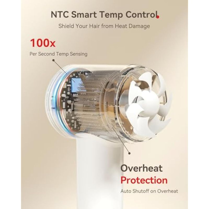 Secado eficiente y rápido con potente motor: el secador de pelo de viaje HEXTEK funciona con un motor sin escobillas de alta velocidad que gira a 110,000 RPM, ofreciendo un flujo de aire robusto de 118.1 fts. Experimenta un secado del cabello 5 veces más rápido que los métodos tradicionales, con tiempos de secado tan rápidos como 2-5 minutos. Deléitese con el deleite del cabello de secado rápido que se siente simplemente increíble
