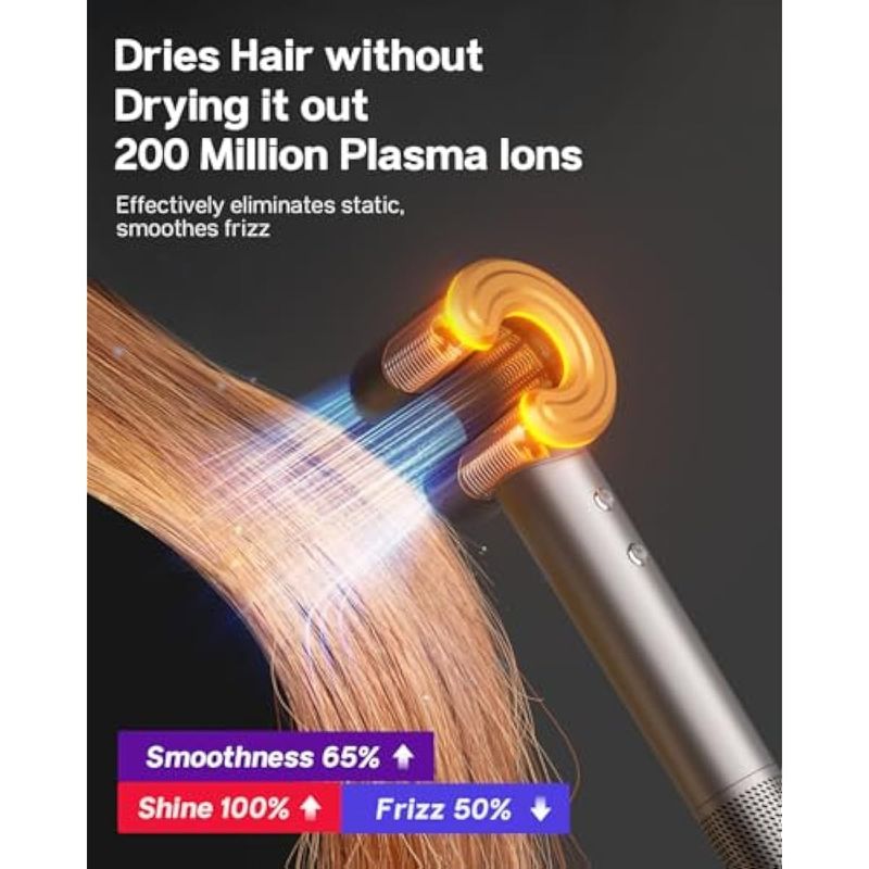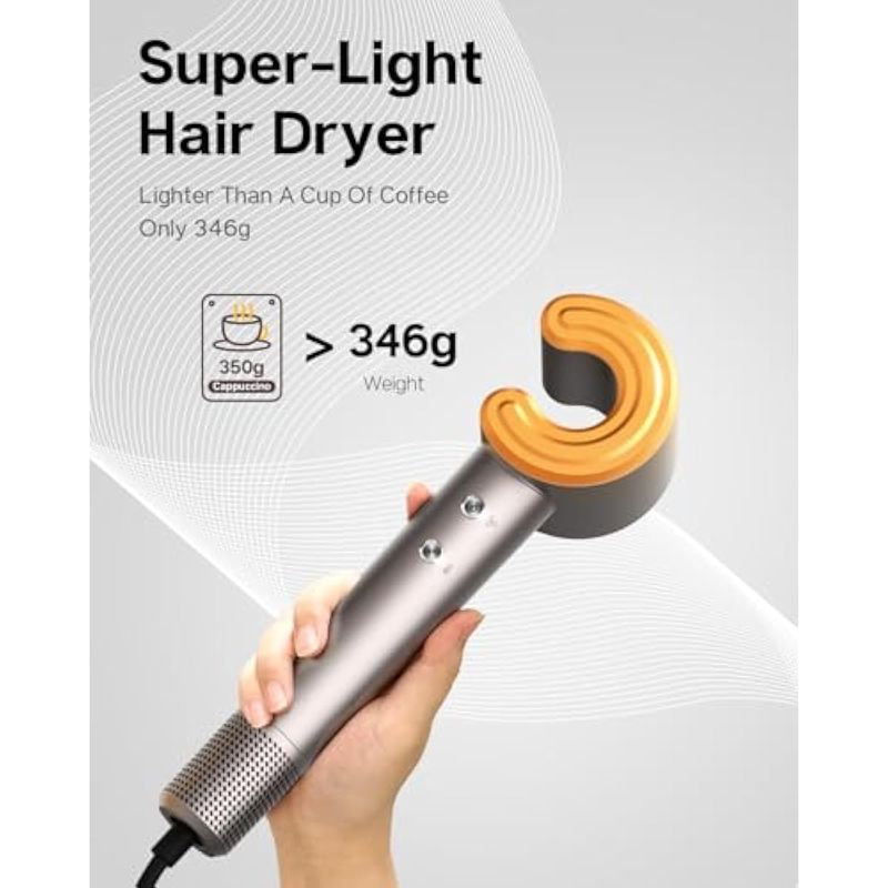 Secado rápido en 5 minutos: aumenta tu juego de glamour en solo 5 minutos. Este secador de pelo tiene un motor avanzado con una velocidad de hasta 110,000 rpm. Detengámonos por un momento y tenga en cuenta que el secador de pelo tradicional solo gira a 20.000 rpm. Nuestro secador de pelo impulsa el aire a 65.6 fts, secando tu cabello rápidamente sin riesgo de daños por calor y logra un resultado de calidad de salón.