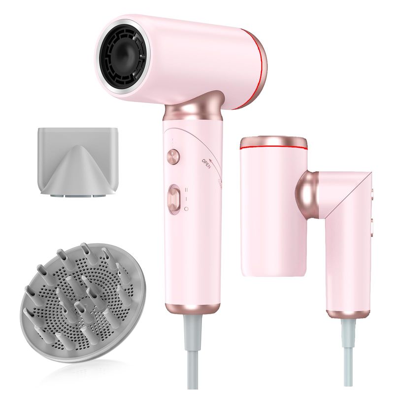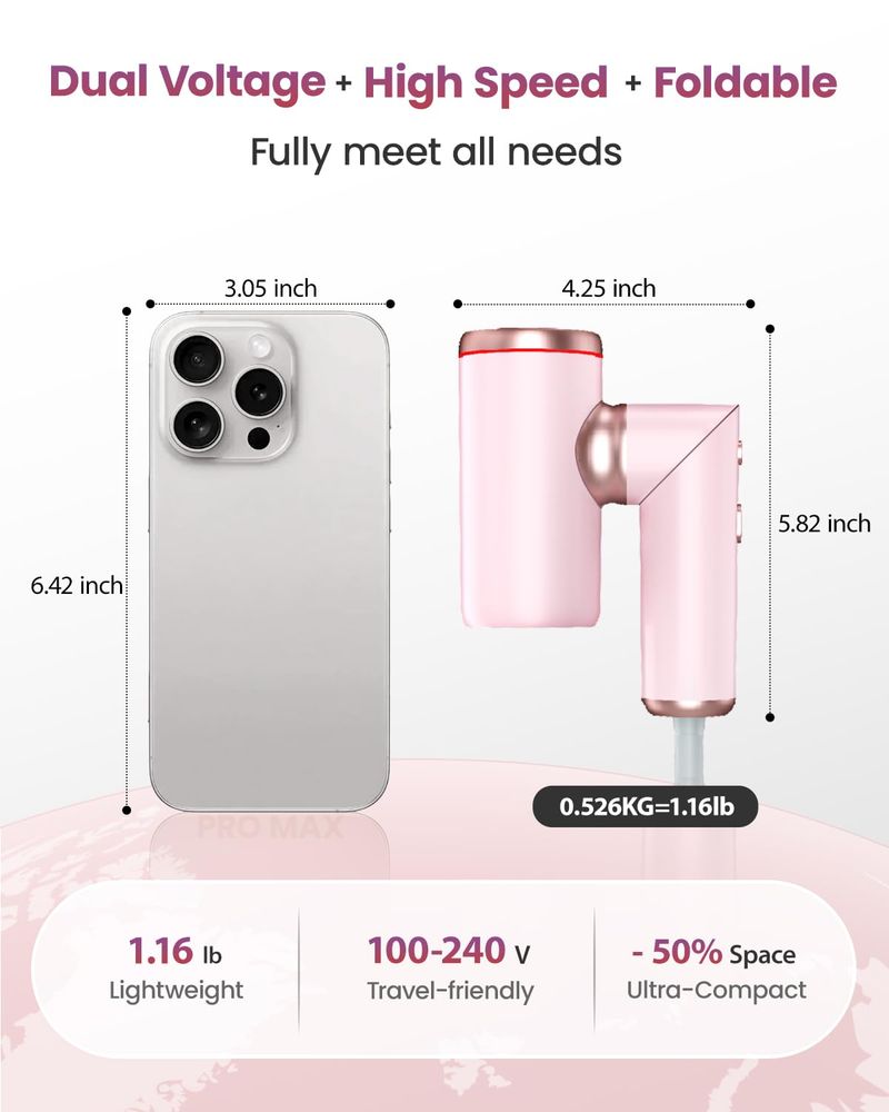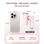 Secador de pelo plegable de viaje, 100-240 V, doble voltaje, alta velocidad con 2 boquillas