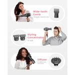 1 difusor y 3 accesorios concentradores: El secador de pelo con difusor y peine de boquillas es perfecto para el cuidado del cabello rizado, haciendo que los rizos voluminosos sean más naturales y ondas; Las boquillas suaves son excelentes para el peinado personalizado del cabello liso y natural; múltiples accesorios adecuados para diferentes requisitos de peinado, ya sea que tenga cabello corto, rizado o afro.