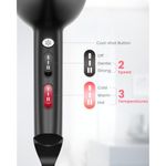 SECADOR DE PELO PROFESIONAL IóNICO CON MOTOR DE CA, SECADO RáPIDO, CON DIFUSOR, PEINE, BOQUILLA, CONCENTRADOR, PARA CABELLO RIZADO Y LISO, 2 VELOCIDADES Y 3 AJUSTES DE CALOR, BOTóN FRíO, NEGRO
