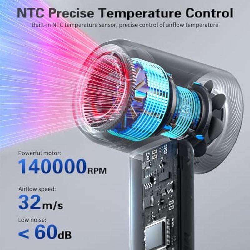 Velocidad superior y suave con el cabello: experimenta la potencia del motor sin escobillas de alta velocidad de nuestro secador de pelo ARAS con un impresionante 140,000 RPM. Con una velocidad de viento de 105.0 fts, seca tu cabello 5 veces más rápido que las secadoras tradicionales, lo que te da más tiempo para disfrutar de los resultados. ¡El secado rápido nunca se ha sentido tan increíble!