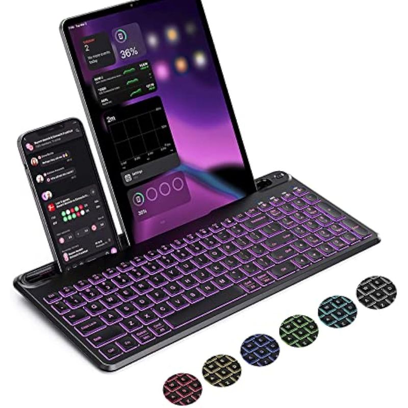 SEENDA TECLADO BLUETOOTH RETROILUMINADO MULTIDISPOSITIVO PARA TABLETA, TELéFONO, COMPUTADORA, TECLADO RECARGABLE INALáMBRICO ILUMINADO CON TECLADO NUMéRICO, CONECTA HASTA 4 DISPOSITIVOS COMPATIBLE CON MAC ANDROID IOS WINDOWS