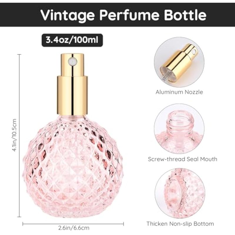 Segbeauty Botella de perfume vintage, 3.4 oz 3.4 fl oz botella de spray rosa para perfume,
