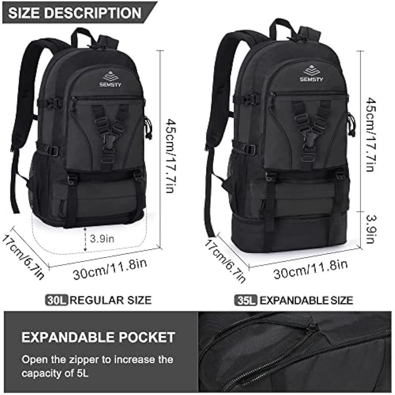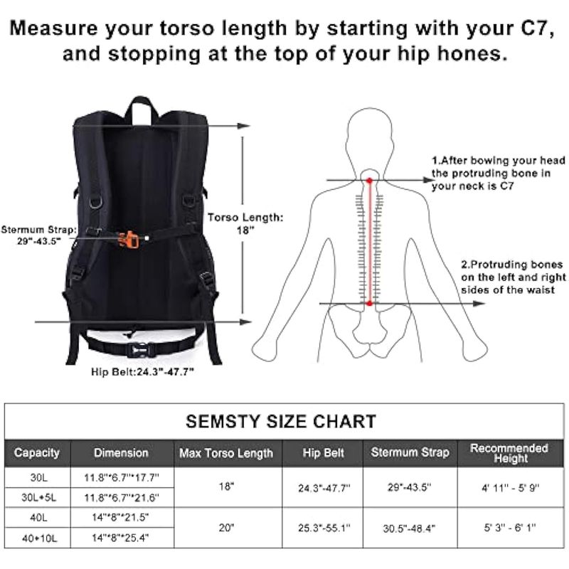 SEMSTY Mochila de senderismo, 30L/40L/50L, mochila de senderismo expandible para hombres y mujeres,