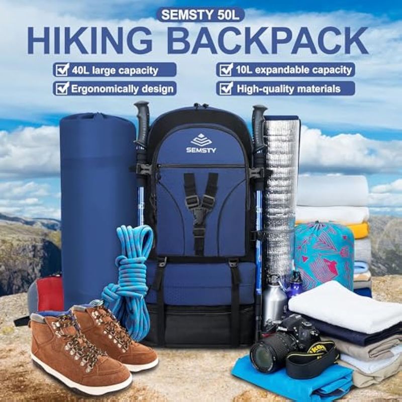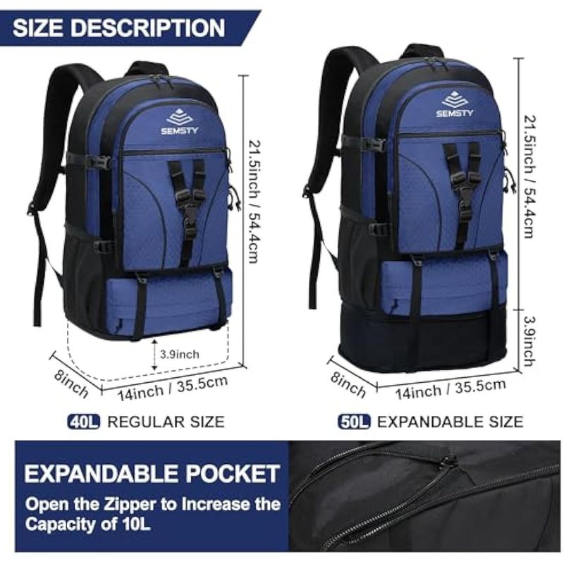 SEMSTY Mochila de senderismo, 30L/40L/50L, mochila de senderismo expandible para hombres y mujeres,