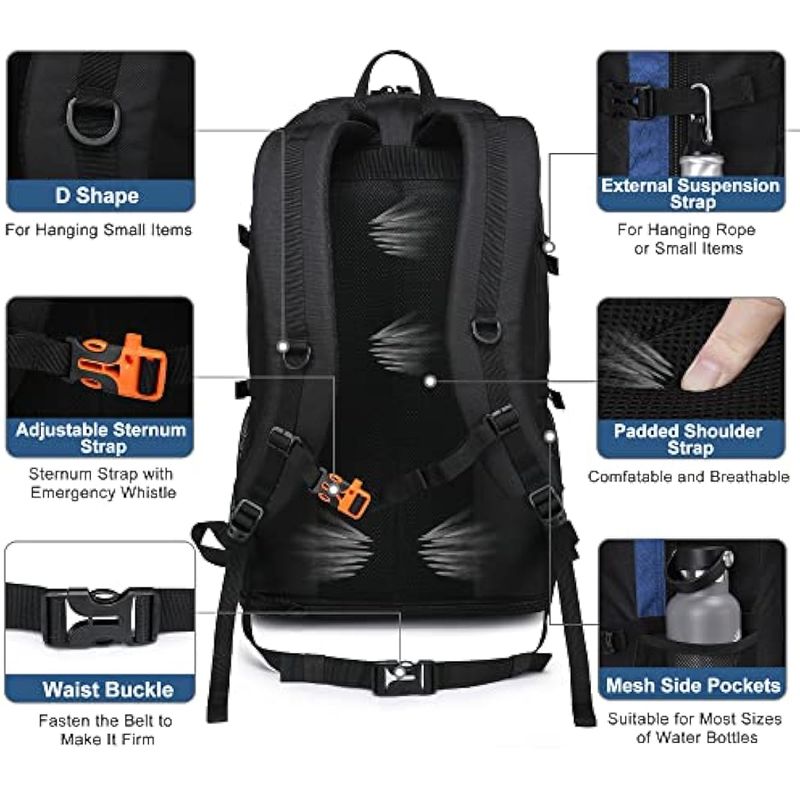 EQUIPAJEMOCHILASSEMSTY Mochila de senderismo, 30L/40L/50L, mochila de senderismo expandible para hombres y mujeres,