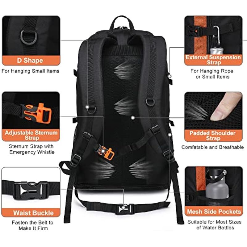 EQUIPAJEMOCHILASSEMSTY Mochila de senderismo, 30L/40L/50L, mochila de senderismo expandible para hombres y mujeres,