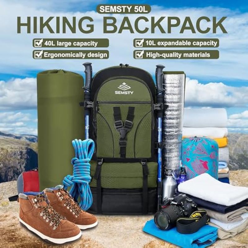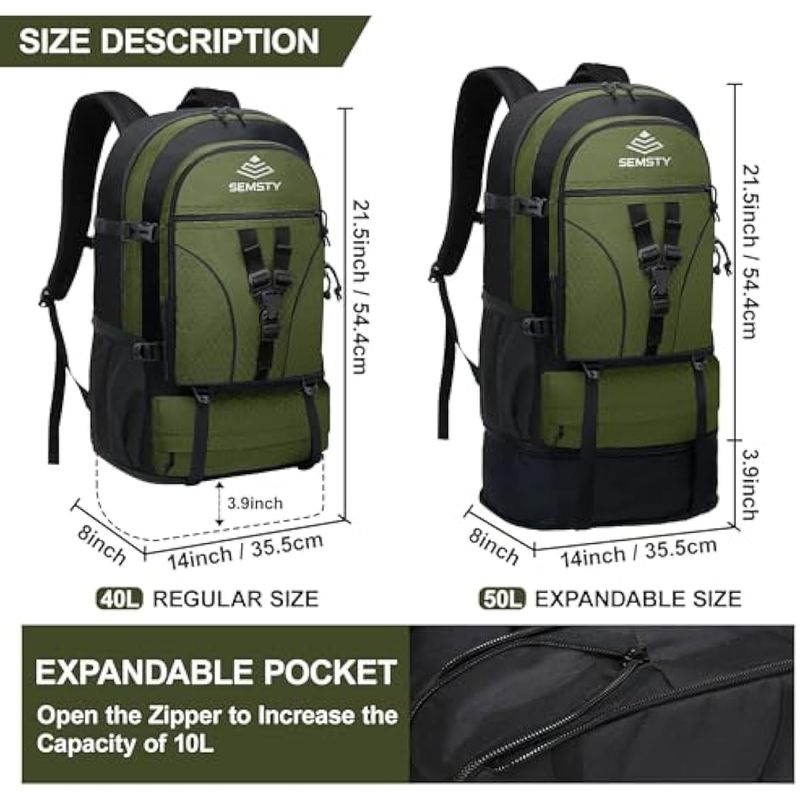 SEMSTY Mochila de senderismo, 30L/40L/50L, mochila de senderismo expandible para hombres y mujeres,