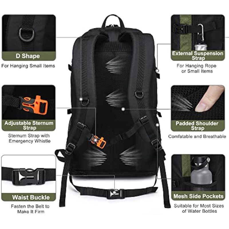 EQUIPAJEMOCHILASSEMSTY Mochila de senderismo, 30L/40L/50L, mochila de senderismo expandible para hombres y mujeres,
