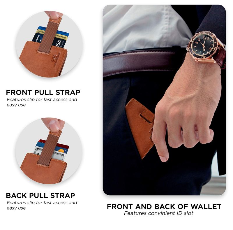 SERMAN BRANDS RFID Blocking Bifold Slim Genuine Leather Minimalist Front Pocket Wallets for Men - Pardo