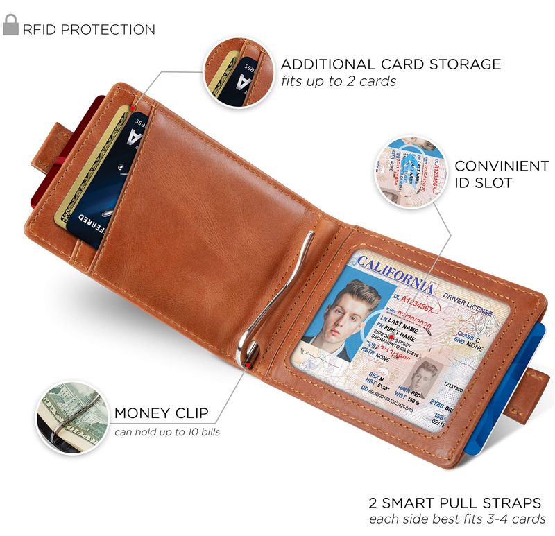 SERMAN BRANDS RFID BLOCKING BIFOLD SLIM GENUINE LEATHER MINIMALIST FRONT POCKET WALLETS FOR MEN MONEY CLIP