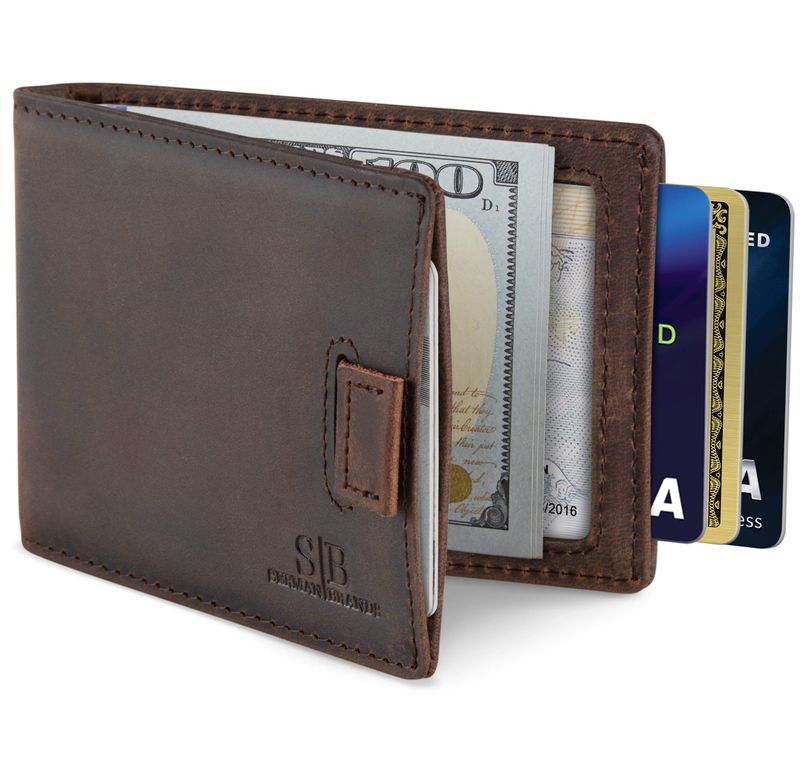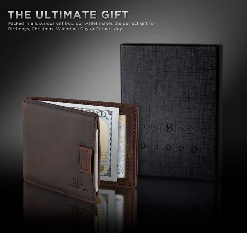 SERMAN BRANDS RFID Blocking Bifold Slim Genuine Leather Minimalist Front Pocket Wallets for Men